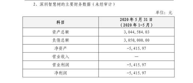 在公告中,九游体育·九游官方网站-九游 NineYou(中国)科技披露了深圳智慧树的主要财务数据(未经审计),如下图所示。